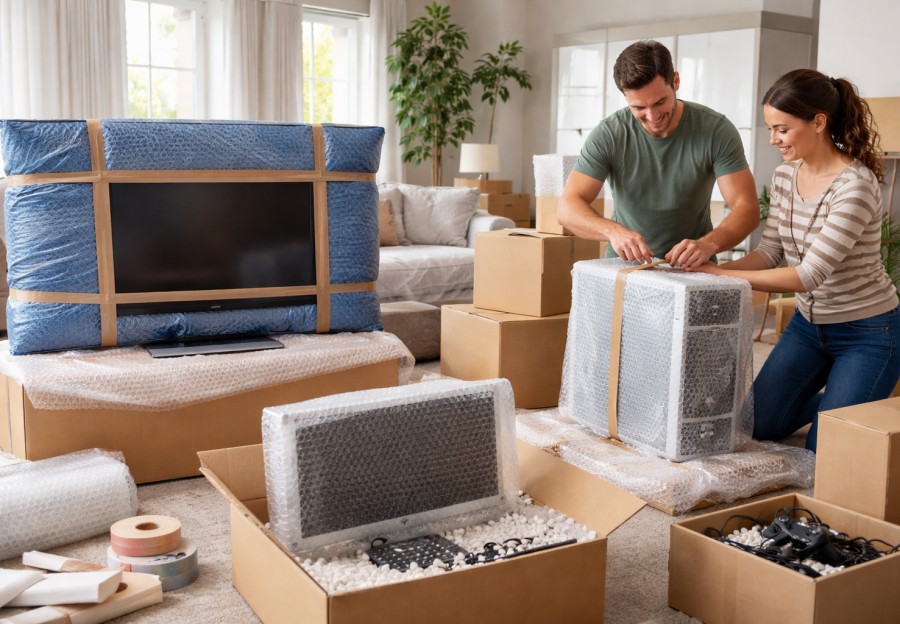 Lighting and small electronics such as desk lamps, routers, and speakers should be padded individually. Bulbs should be removed and packed separately. LED bulbs are more durable than incandescent ones, but glass breakage still occurs when vibration and pressure combine.