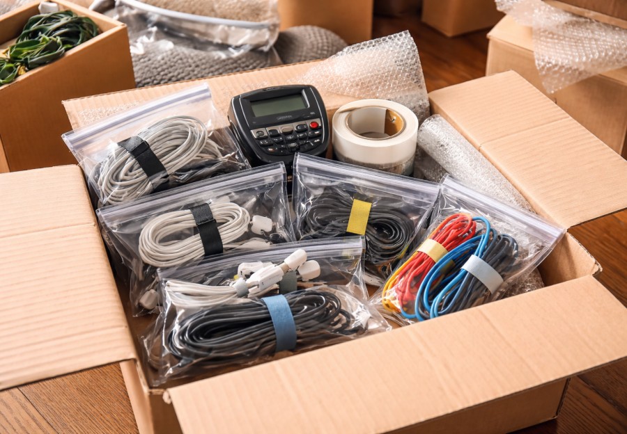 Cables deserve careful attention because tangled cords slow setup and shorten lifespan. The average household owns more than 20 connected devices according to the Consumer Technology Association, which translates into dozens of cables. Coil each cable loosely using wide loops to protect internal conductors. Data cable manufacturers note that tight bending and twisting can reduce cable lifespan by more than 50 percent due to metal fatigue and insulation stress. Light ties keep coils from unraveling without crushing the wire. Label both ends of important cables so reconnecting is quick and accurate.
